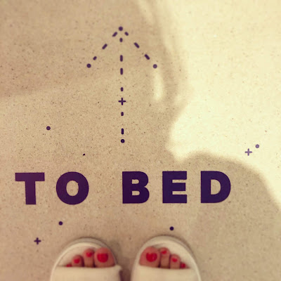 In the entryway to the nap room, a wall sign suggests that after your ablutions, “You are getting very sleepy.” Then it’s time to head into the nap room through a door with a moon-shaped window.