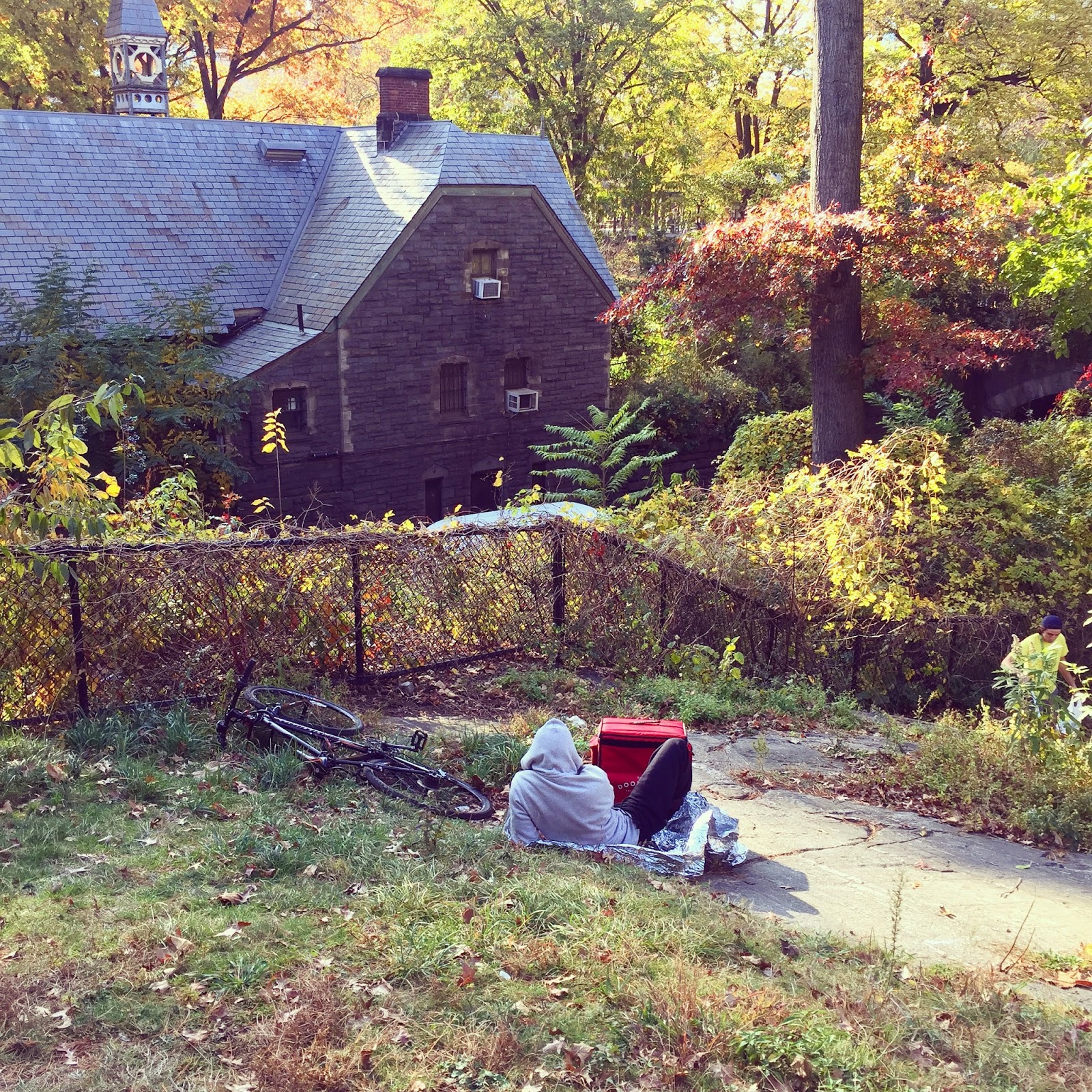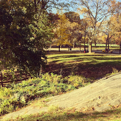 It’s an autumn day in Central Park. Carriage horses nicker, teenagers lounge in the meadow with their phones, and Lycra-encased cyclists holler, “On your right!” as they career past hot-dog carts and charcoal portraitists. Tourists extend their selfie sticks toward the changing leaves.