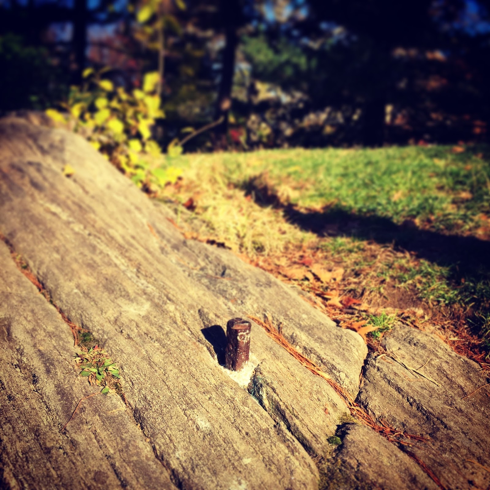 At least one of the Randel bolts remains today, embedded in a mound of schist between the Central Park Dairy and the Sixty-sixth Street transverse, marking what would have been the juncture of Sixty-fifth Street and Sixth Avenue. In 2017, however, it’s just an iron nubbin. The city, after all, is full of inscrutable iron things, from Lilliputian doors in subway stations to arcane sidewalk posts. Can you spot Randel’s street bolt in this picture? If so, imagine strolling through the park and stepping over it. Would you think to look twice?