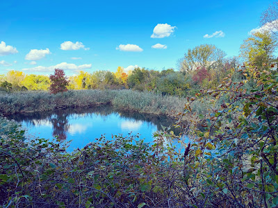 I bushwhacked through tall grasses, mud squelching underfoot, trying to recover the trail. After ten minutes of guessing which turns to take, Monument Pond appeared through the rushes, a serene pool reflecting the sky and treetops.