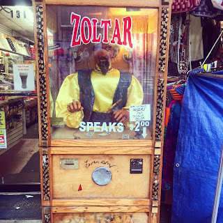 As I saunter toward Second Avenue, feeling loose-limbed and increasingly loose of mind, I catch sight of Zoltar, the patron genie of Gem Spa, beckoning from beneath the awning of the historic candy store and newspaper stand. I insert my two dollars into his booth and he comes to life, nodding and spitting out his yellow paper fortune: “Don’t let opportunity knock on your door in vain.”