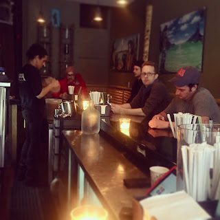 Beneath the bar’s tiki wall hangings and carved totems, the crowd hunkered over the bar is young and scruffy and mostly male. It takes only a few visits to realize that Kavasutra has created a sort of low-key New York City underworld: almost everyone seems to be a regular, in for their daily fix, bent comfortably over laptops and phones, popping in and out for smoke breaks, slapping each other on the back. An androgynous person sketches; a guy scribbles in a journal. Some guys in hoodies discuss interstate cigarette smuggling. The Velvet Underground plays. A group of stunt artists talk about a friend who can bend his rib cage to contort into any container, and another group discusses numerology in Harry Potter.