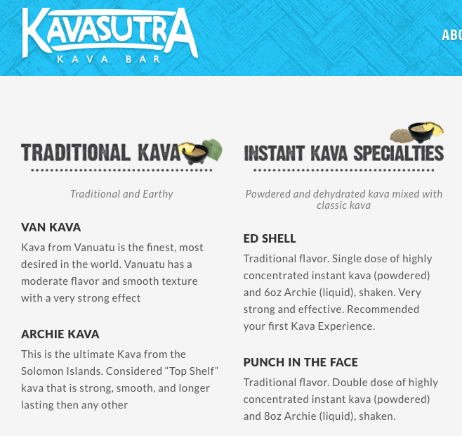 As today’s weekday afternoon crowd attests, kava is becoming increasingly popular as a legal, FDA-approved alternative to alcohol—though mixing the two is not recommended, for risk of liver damage (mixing kava with acetaminophen is also discouraged). Unlike alcohol, kava has a reverse tolerance effect, so the first time you try it you have to have a strong dose, or a lot, to feel any effects. For my first tasting, I eschew Kavasutra’s “Punch in the Face” in favor of the “Ed shell,” a blend of powdered and liquid kava that the menu describes as “very strong and effective.” At the call of “Bula,” I nervously raise my shell to my lips and tip it toward me.