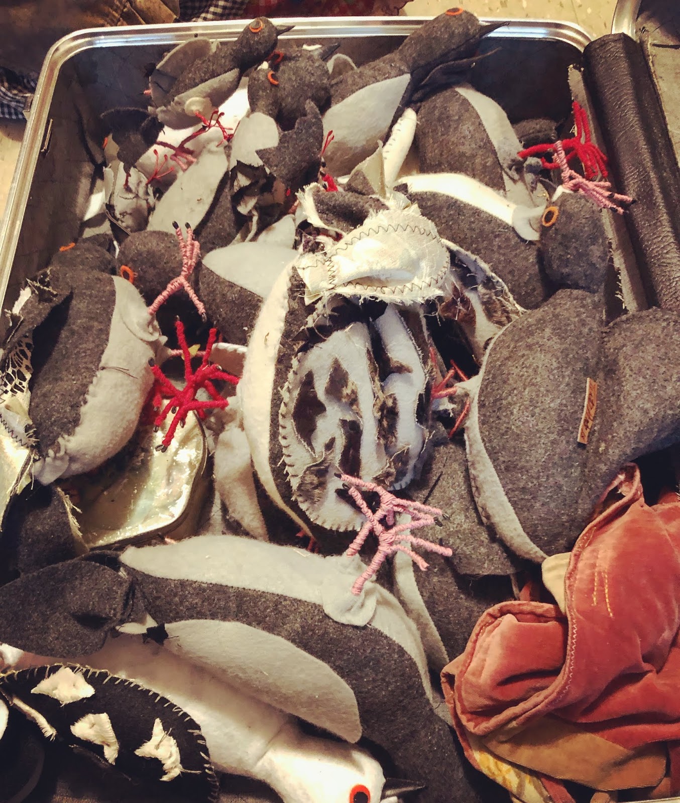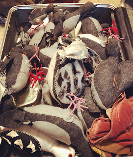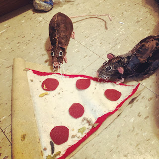 Mother Pigeon’s animals are born in her Bushwick home workshop, where I visited her just before the December sales rush: it turns out velvety vermin are a popular holiday gift. As we talked, two rats nibbled on a slice of felt pizza, a sight that would likely horrify most apartment dwellers.