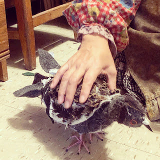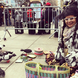 Mother Pigeon, a.k.a. Tina Trachtenburg, makes soft sculptural pigeons and rats out of fabric and wire. You can sometimes find her in Union Square Park, sheathed in her handmade feathered oufit, with her “flash flock” pecking at the pavement around her. As she adds whiskers to a rat’s nose or wraps a pigeon’s foot in yarn, she receives visitors—both human and avian—who are alternately fooled, startled, repulsed, charmed, and intrigued by her lifelike creations. For Mother Pigeon, an animal activist focused on the rights of urban pigeons and rats, this is all part of a day’s work.